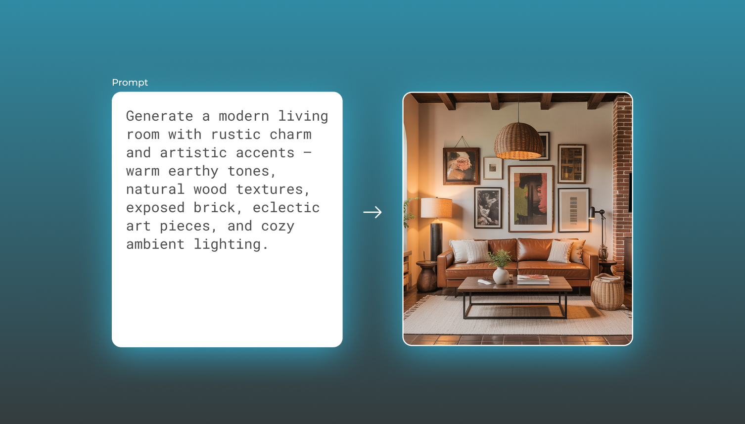 صِف المساحة التي تريد رؤيتها. يحلل الذكاء الاصطناعي النص وينشئ الصور وفقًا لذلك